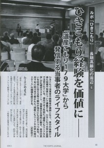 「北方ジャーナル」3月号2016.2.15発売に【シリーズ】ルポ 「ひきこもり」──長期高齢化の周辺 (6)ひきこもり経験を価値に──「道産こもり179大学」から発信する当事者のライフスタイルが掲載されました。