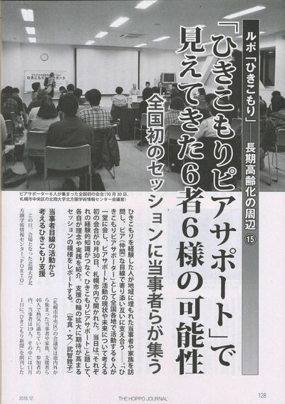 北方ジャーナル12月号ルポ「ひきこもり」-長期高齢化の周辺⑮「ひきこもりピアサポート」で見えてきた6者6様の可能性が6頁にわたり掲載されました。