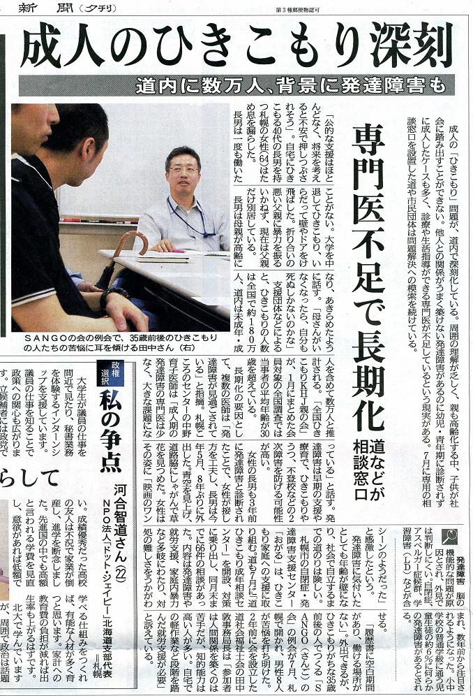 成人のひきこもり深刻 道内に数万人、背景に発達障害も