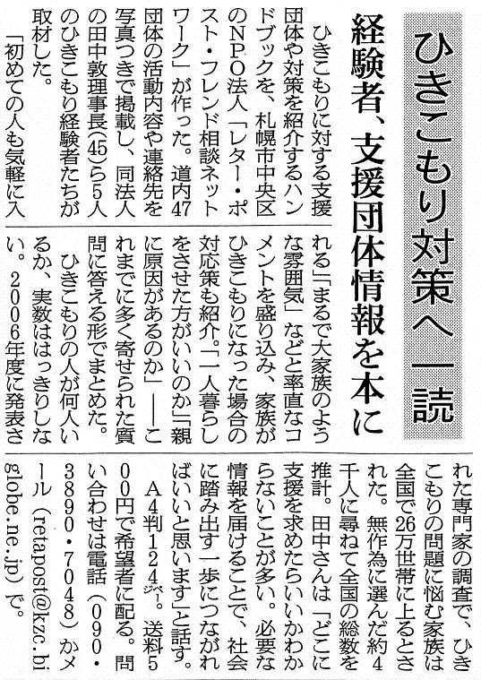 ひきこもり対策へ一読 経験者、支援者団体情報を本に