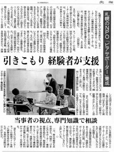 北海道新聞朝刊生活面全道版2013.10.17に特定非営利活動法人レター・ポスト・フレンド相談ネットワーク主催「第1回ひきこもり・ピア・サポーター養成研修会」の模様が報道されました。