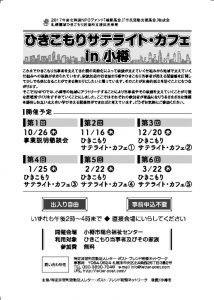 そこで当NPOでは、小樽市の地域にアウトリーチすることにより当事者やその家族を支えていくことが可能な居場所づくりをすすめていくことにしました。ここではそれぞれの参加者が有益になりうるさまざまな情報を提供しお互い支え合い学び合える関係性ができればと考えています。どうぞお気軽にご参加ください。