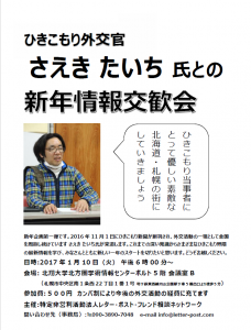 ひきこもり外交官 さえき たいち 氏との新年情報交歓会のお知らせ